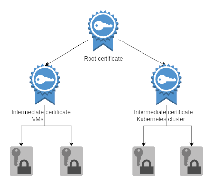 After executing the playbook you will have access to intermediate certificate file ./certs/intermediate-kubernetes-chain.crt and corresponding private key ./private/intermediate-kubernetes.key.